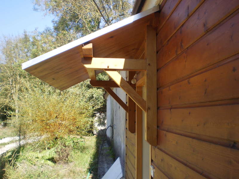 Cet habillage est réalisé en demi rondins d'acacia et de petites tuiles en pin