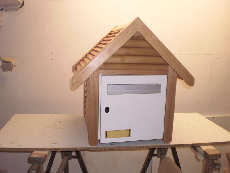 Cette boîte aux lettres est réalisée en bardage sapin avec le toit décalé .